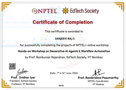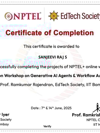 I’m Sanjeevi Raj S, a dedicated and growth-driven professional with a strong foundation in both technology and management. I hold a Bachelor's degree in Computer Science from The Madura College of Arts and Science, Madurai (2015–2018).