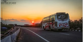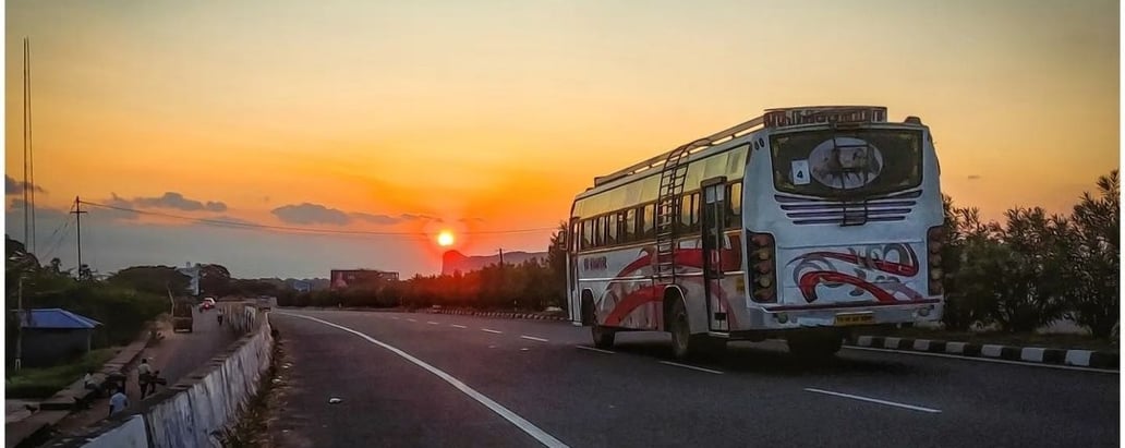 As the sun dipped low, a bus rolled by — a fleeting moment frozen through a mobile camera.