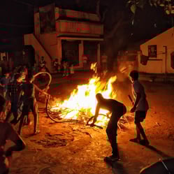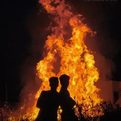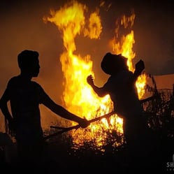 Silhouette captured against the backdrop of burning waste, set ablaze by an unidentified individual.