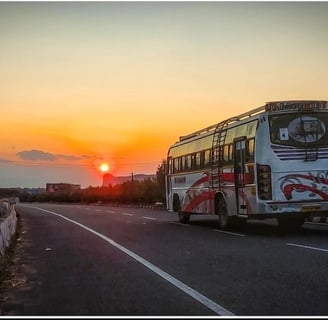 As the sun dipped low, a bus rolled by — a fleeting moment frozen through a mobile camera.